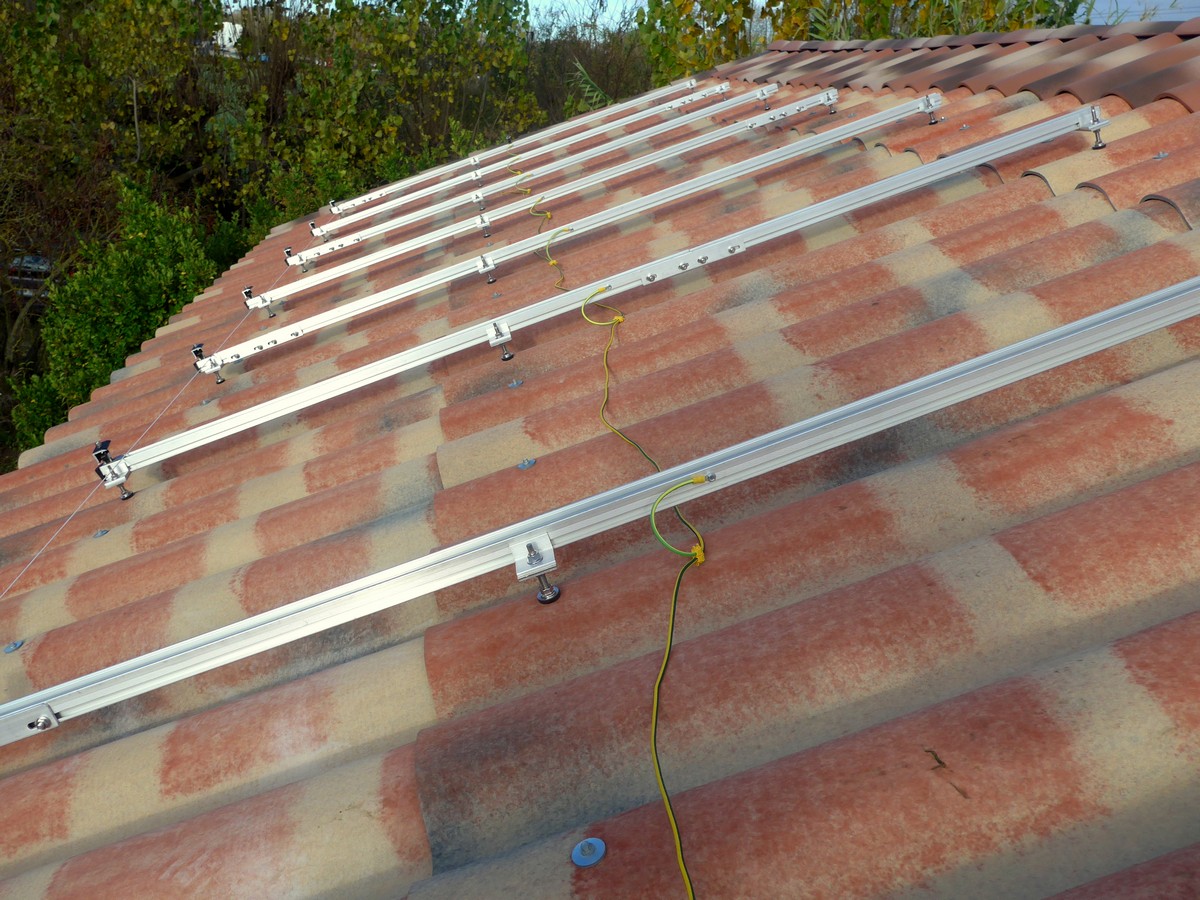 - Support des modules : Rails Singlerail sur plaque fibro-ciment