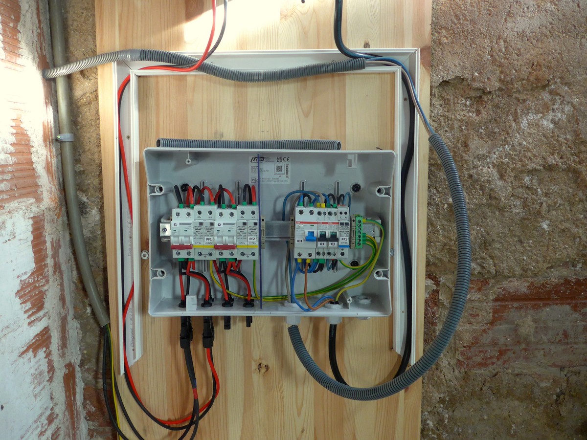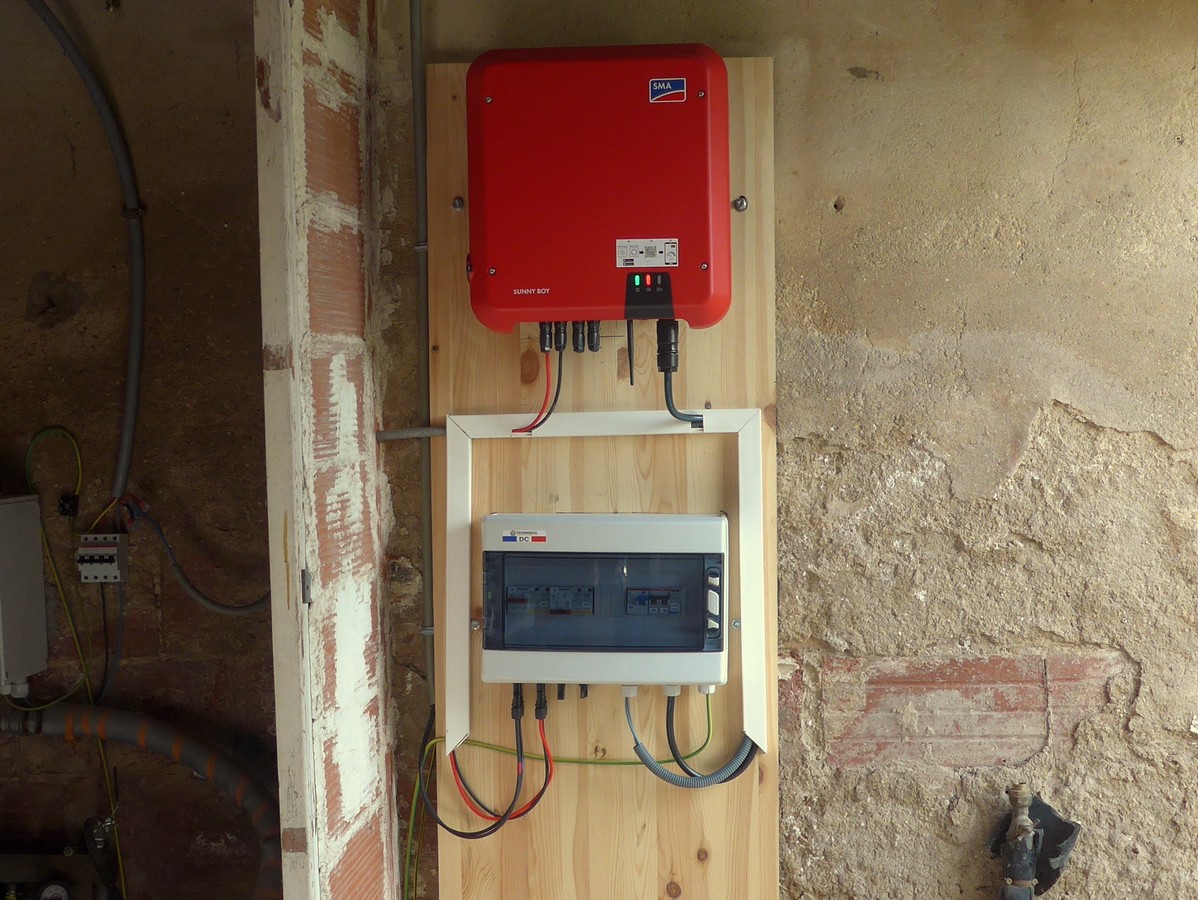 - Onduleur : SMA SB 4.0 en monophasé avec parafoudres dans le coffret DC+AC