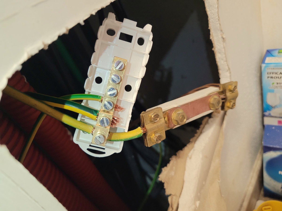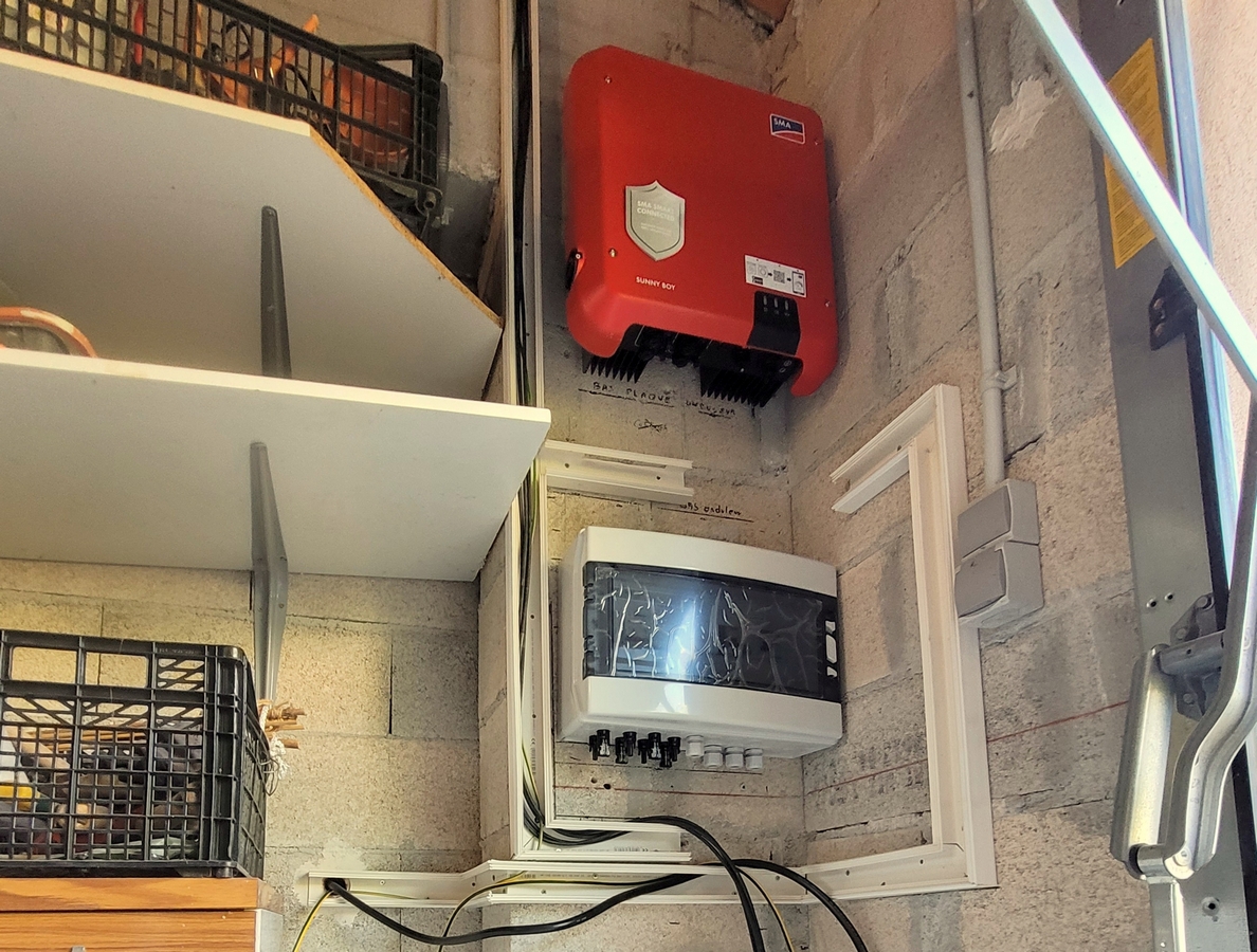 L’onduleur SMA SB 6.0, le coffret de raccordement et les goulottes pour les câbles